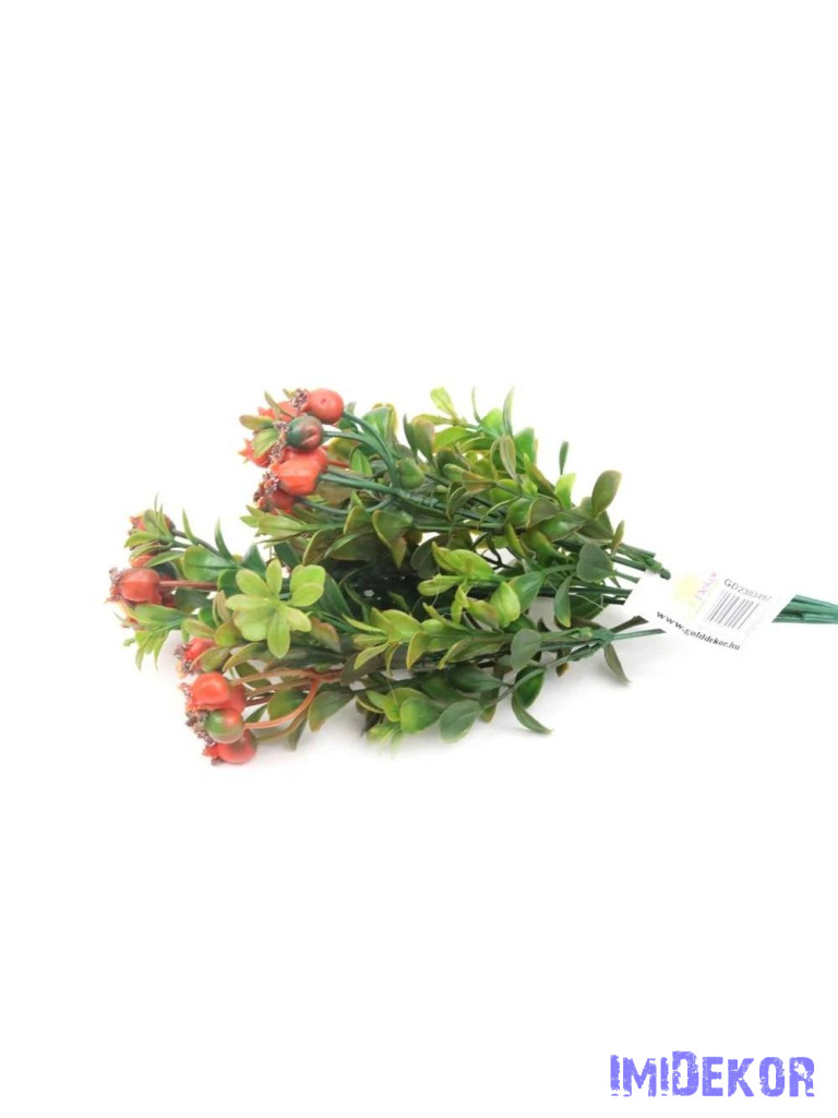 Antik csipkebogyós műzöld csokor 32 cm - Piros