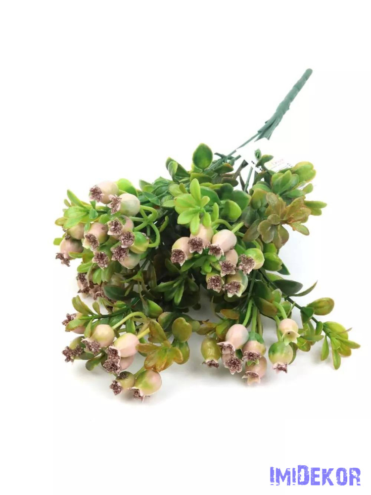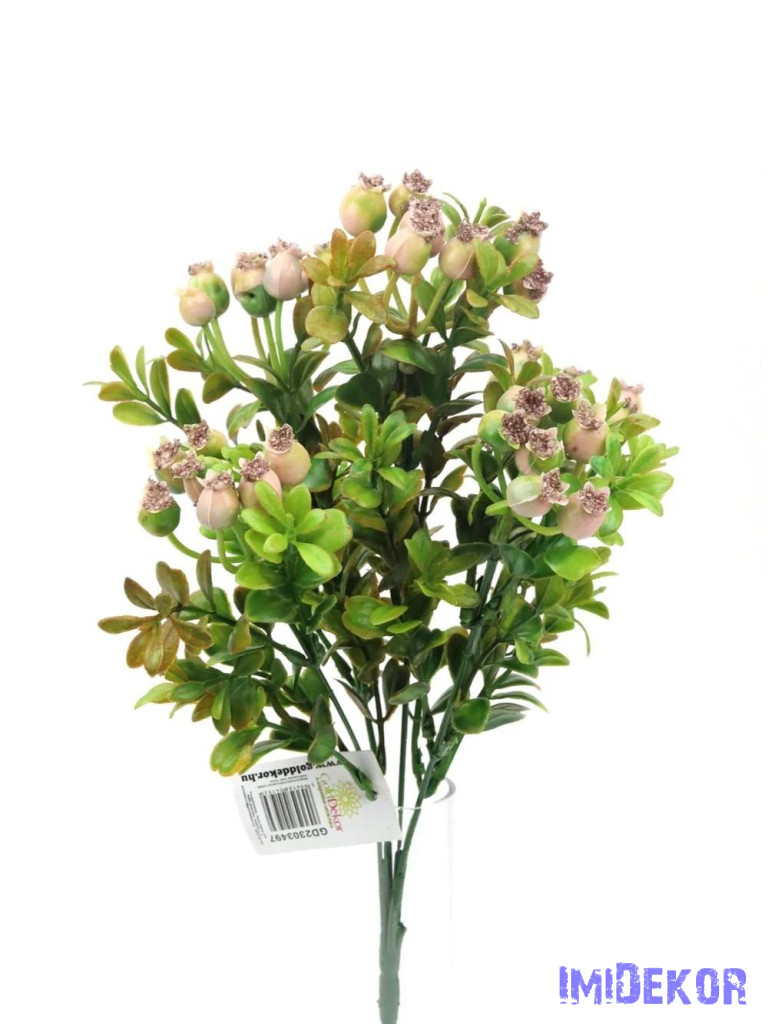 Antik csipkebogyós műzöld csokor 32 cm - Rózsaszín