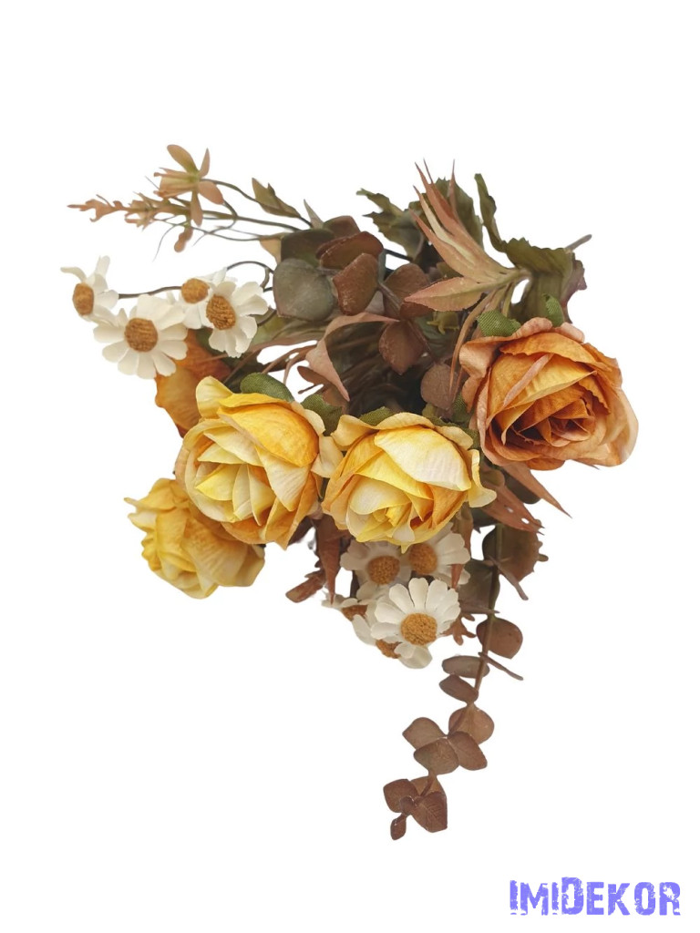 Antik színű rózsa + kis virágos csokor 29cm - Antik Sárga