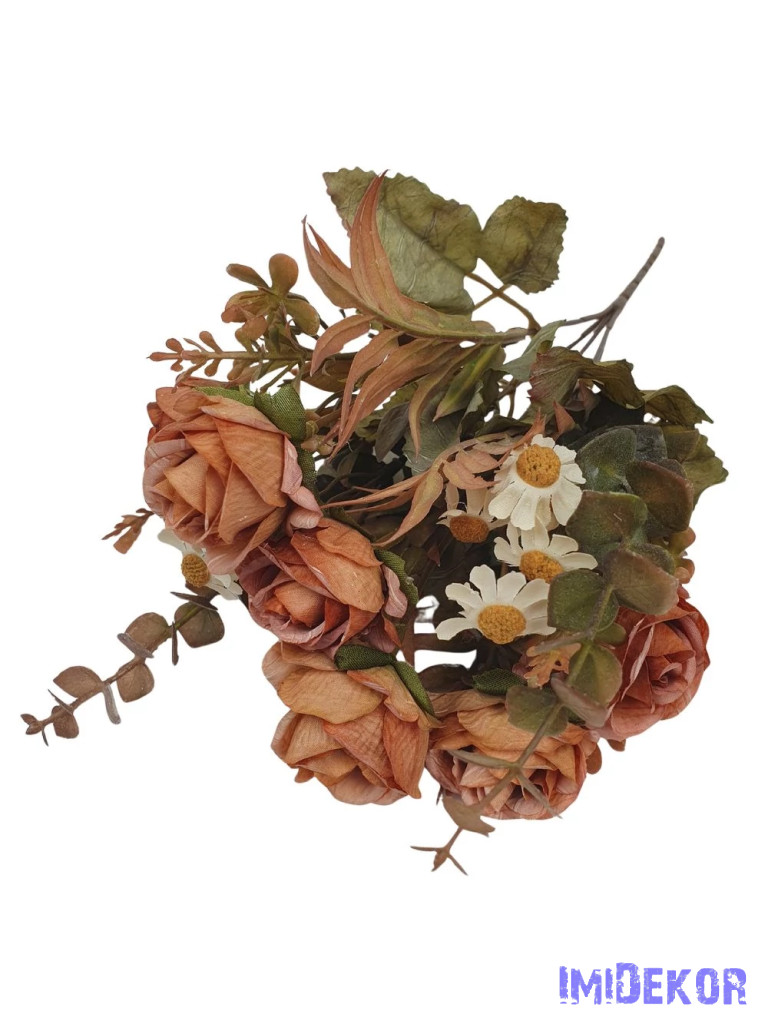 Antik színű rózsa + kis virágos csokor 29cm - Rozsda