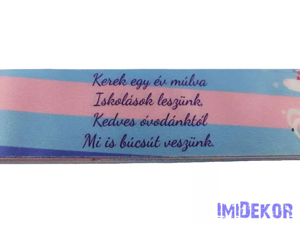 Ballagási szalag 4 cm óvodás - Kék unikornisos