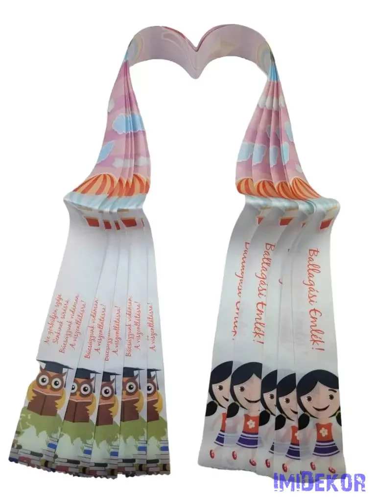 Ballagási szalag 4 cm óvodás - Színes bagoly + kislány