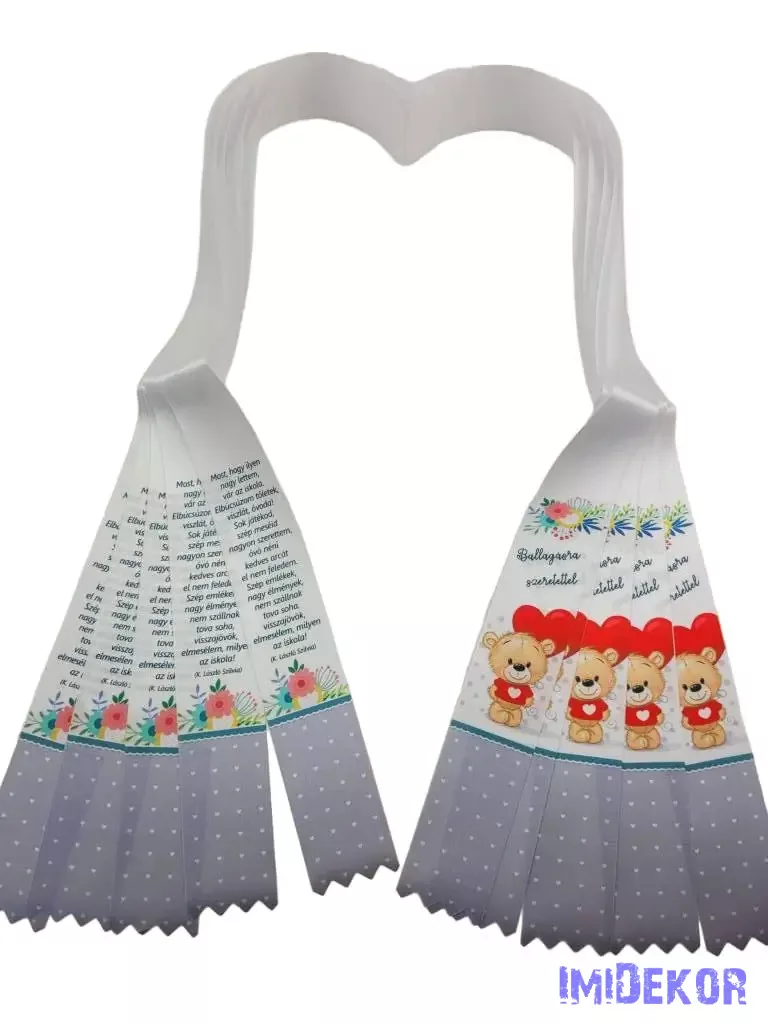 Ballagási szalag 4 cm óvodás - Szívecskés maci