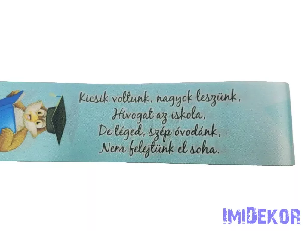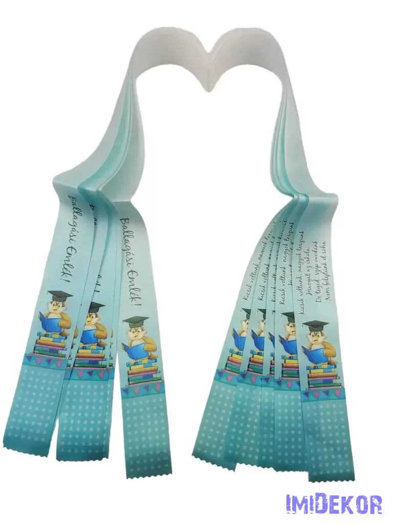 Ballagási szalag 4 cm óvodás - Türkiz kalapos bagoly könyvvel