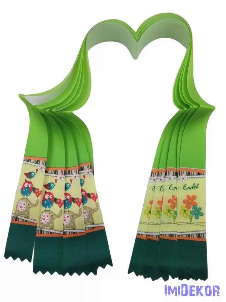 Ballagási szalag 4 cm óvodás - Zöld elefántos-madaras
