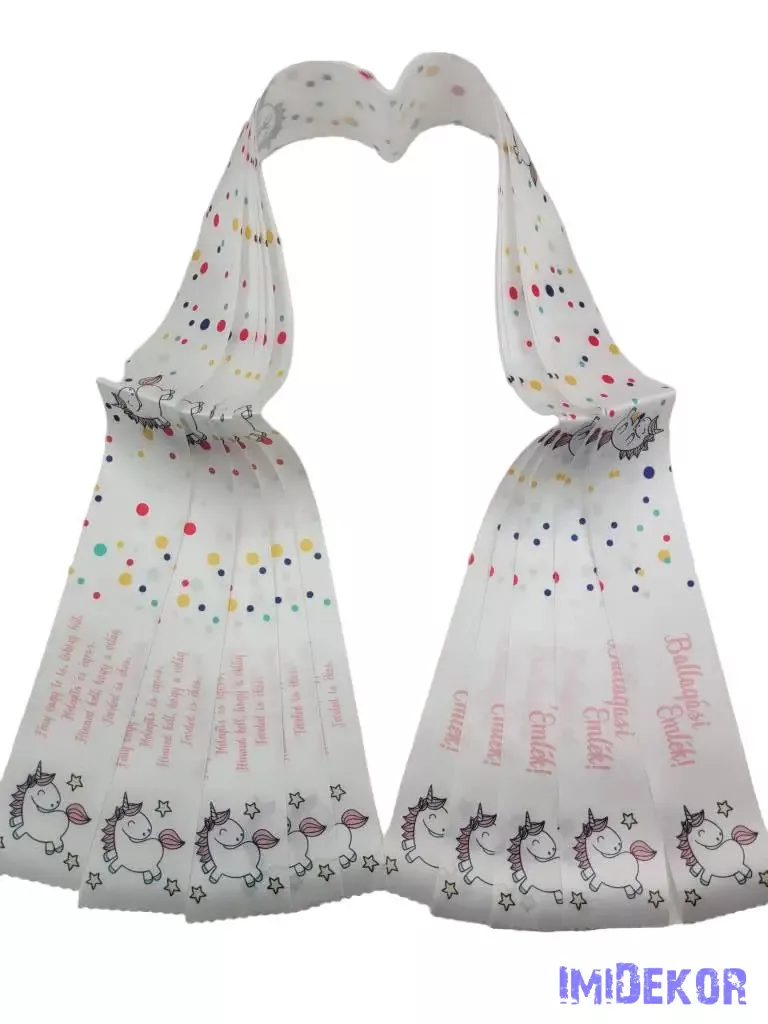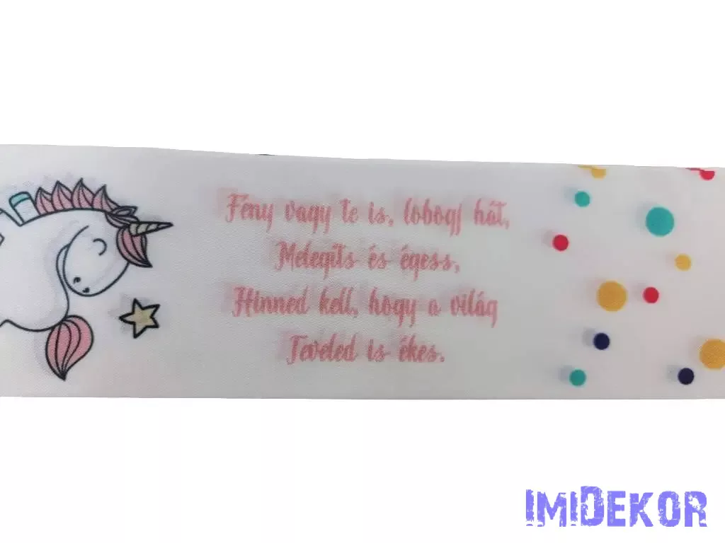Ballagási szalag 5 cm - Fehér vidám unikornis