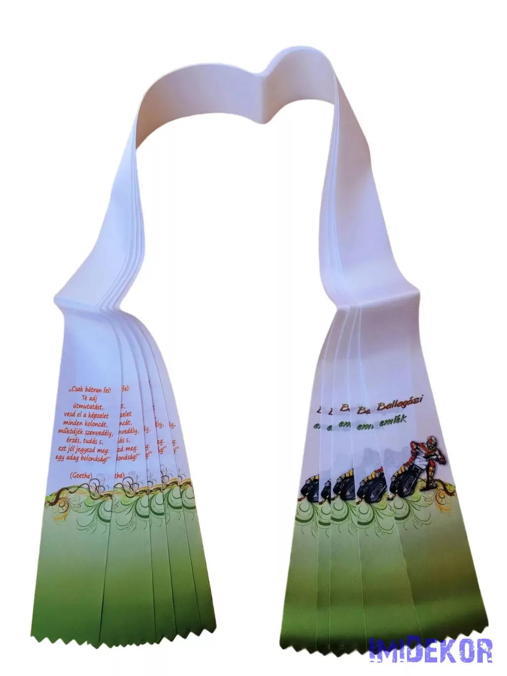 Ballagási szalag 6 cm - Fehér-zöld motoros