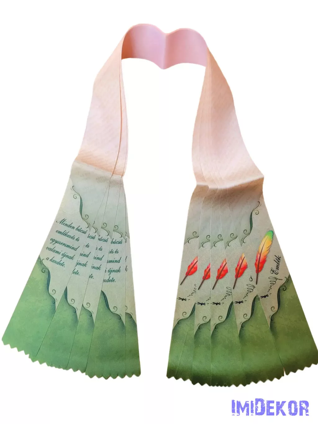 Ballagási szalag 6 cm - Púder-zöld toll