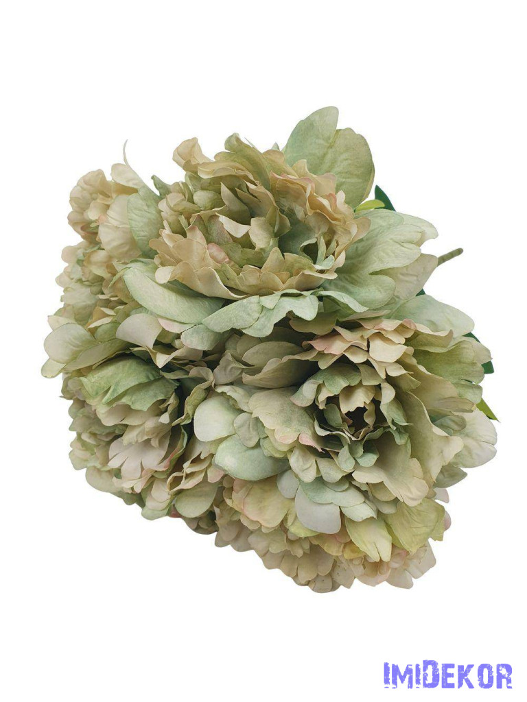 Bazsarózsa 7 fejes selyem csokor 40cm - Zöld