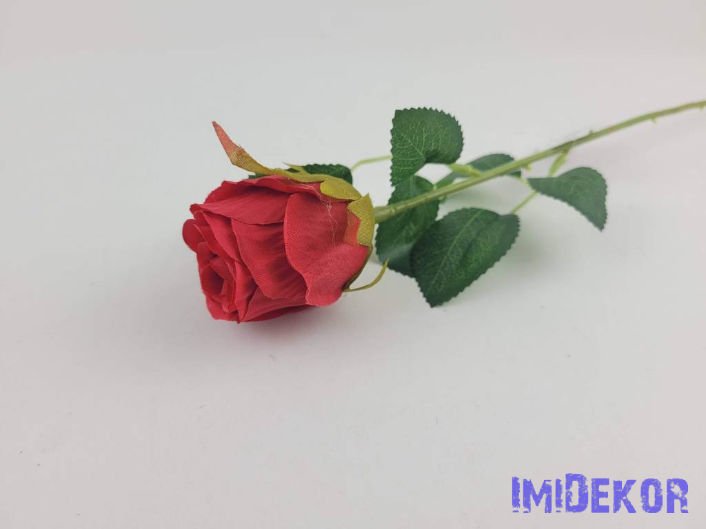 Bimbós rózsa szálas selyemvirág 52cm - Piros
