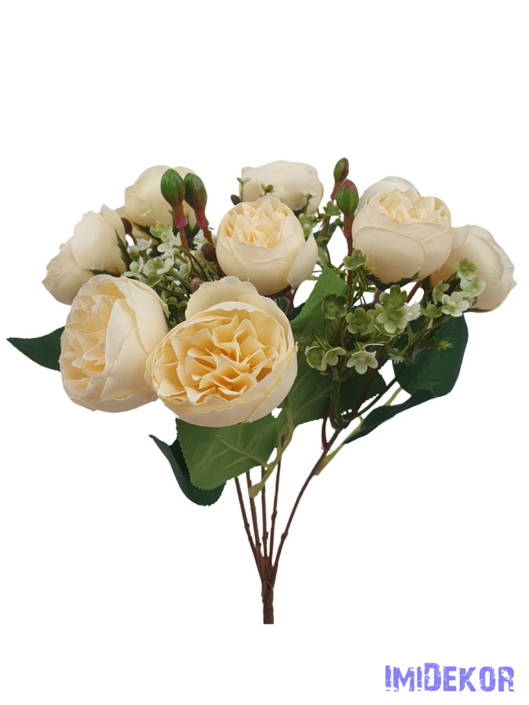 Boglárka 9 fejes selyemvirág csokor 34cm - Törtfehér