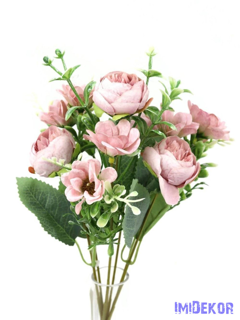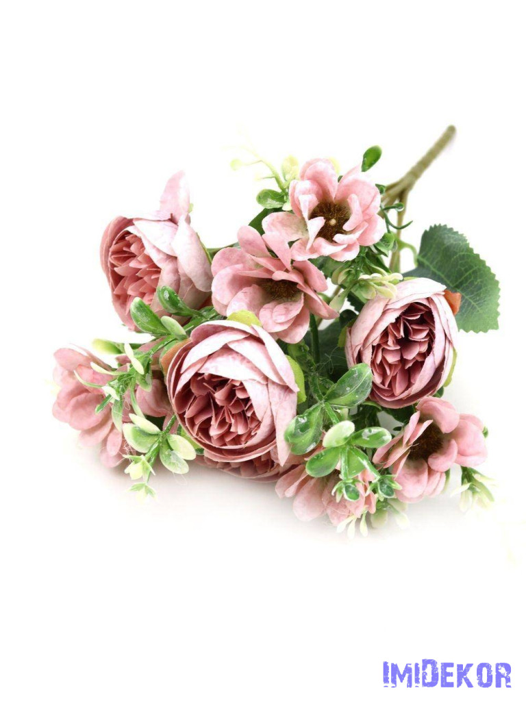 Boglárka + kis virágos selyem csokor 30cm - Fáradt Rózsaszín