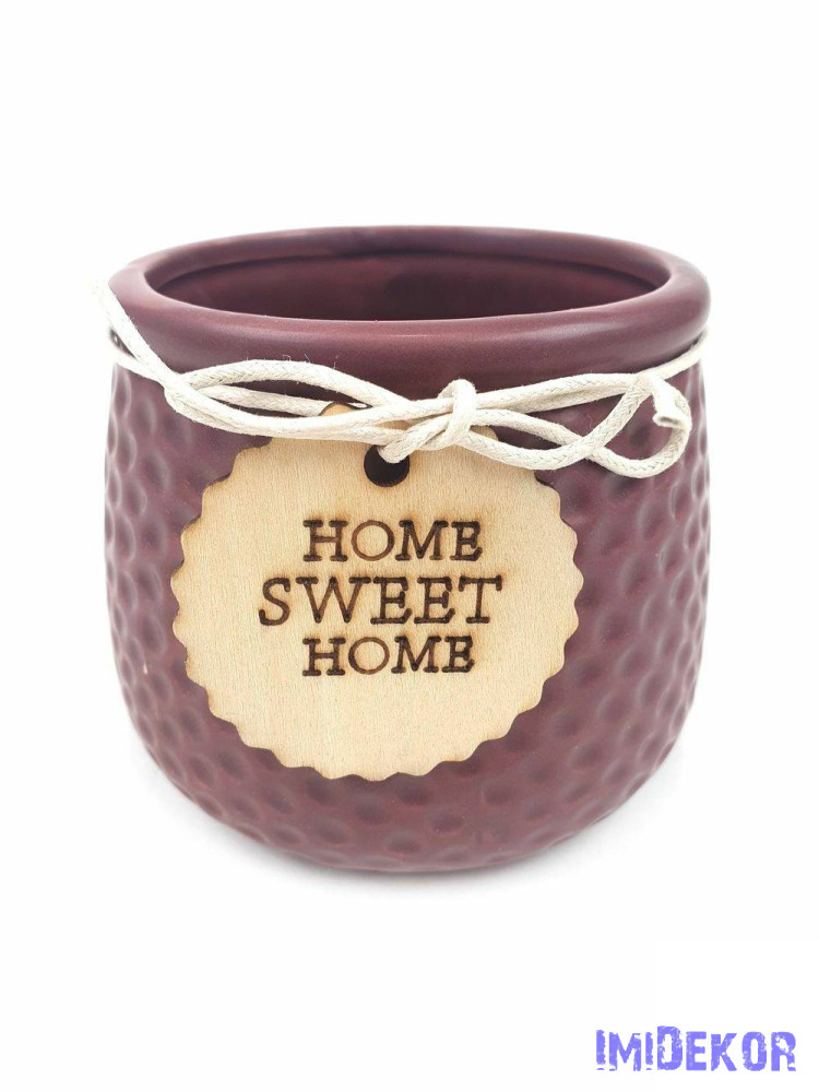 Fa címkés Home Sweet Home kaspó - Mályvás
