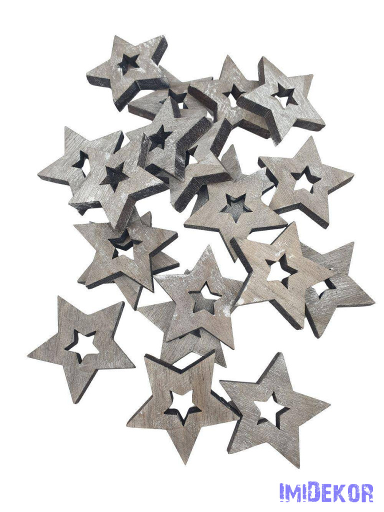 Fa dekor lyukas csillag*20 - Szürke