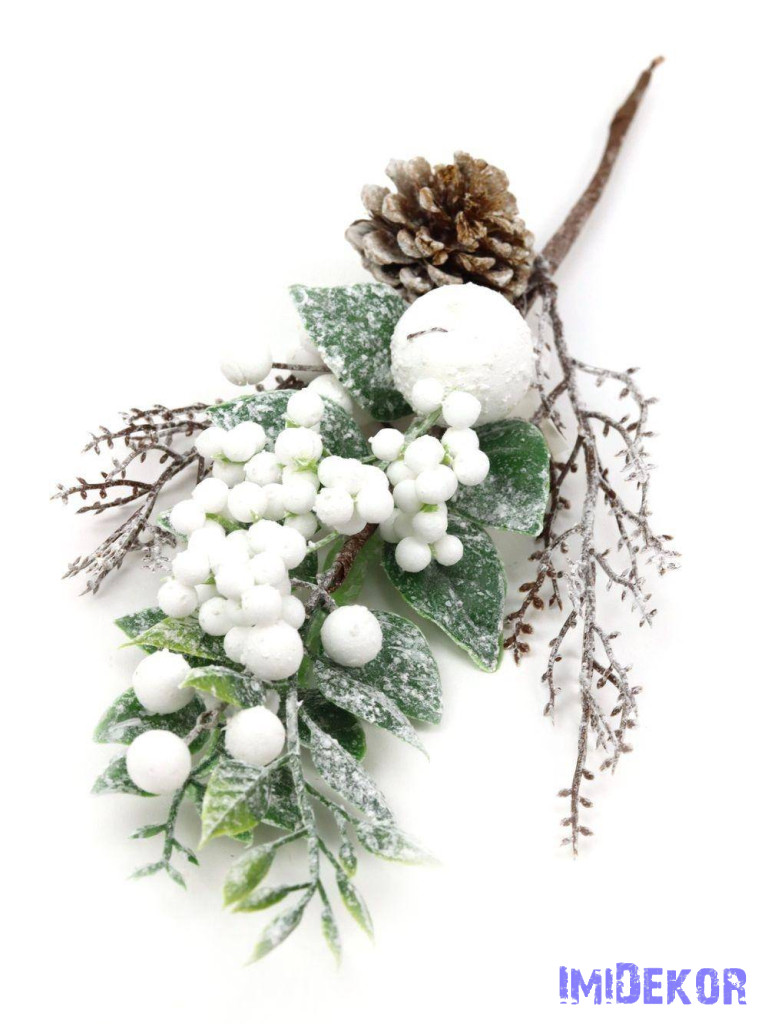 Fehér bogyós téli ág tobozzal 36cm