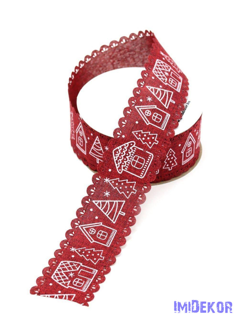 Fehér karácsonyi mintás textil szalag 40mm x 9,144m - Bordó