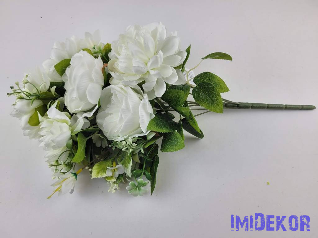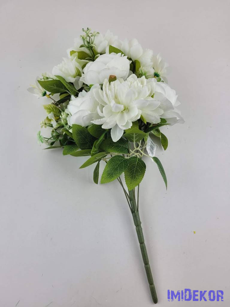 Féloldalas 9 ágú peónia-dália selyemvirág csokor 47cm - Törtfehér