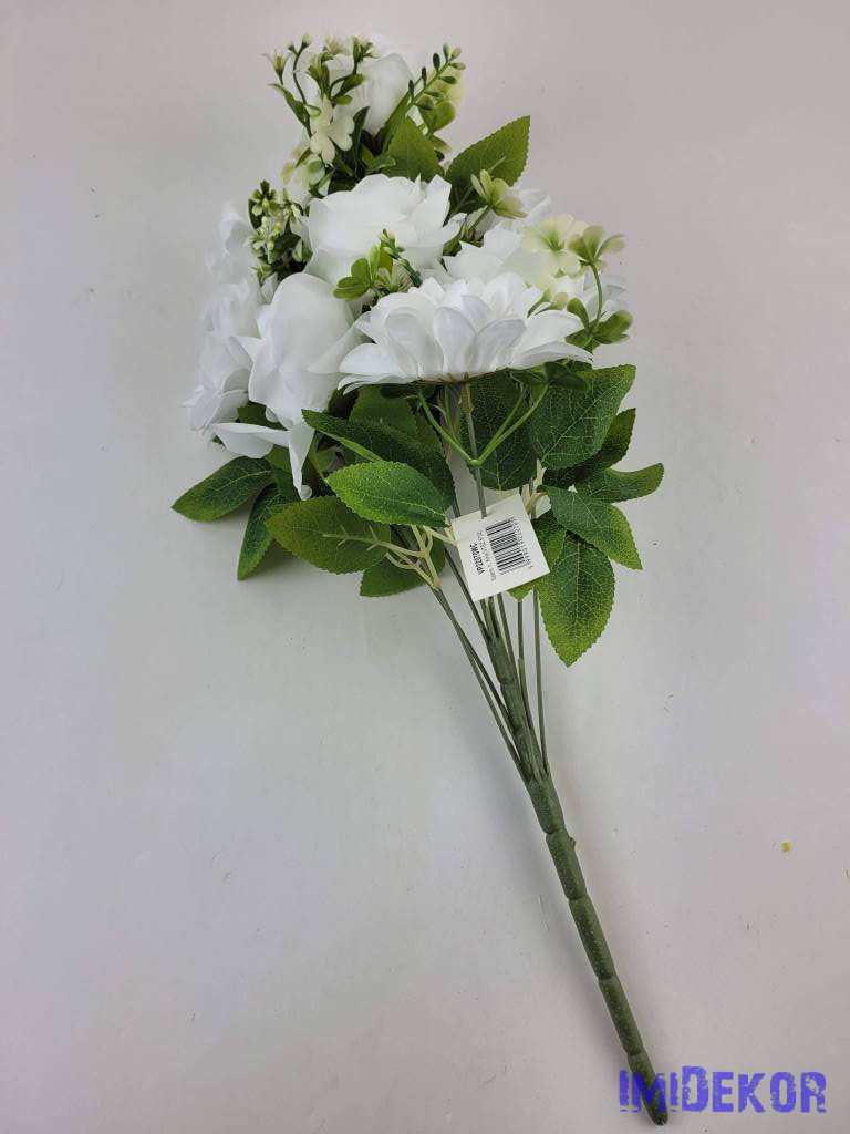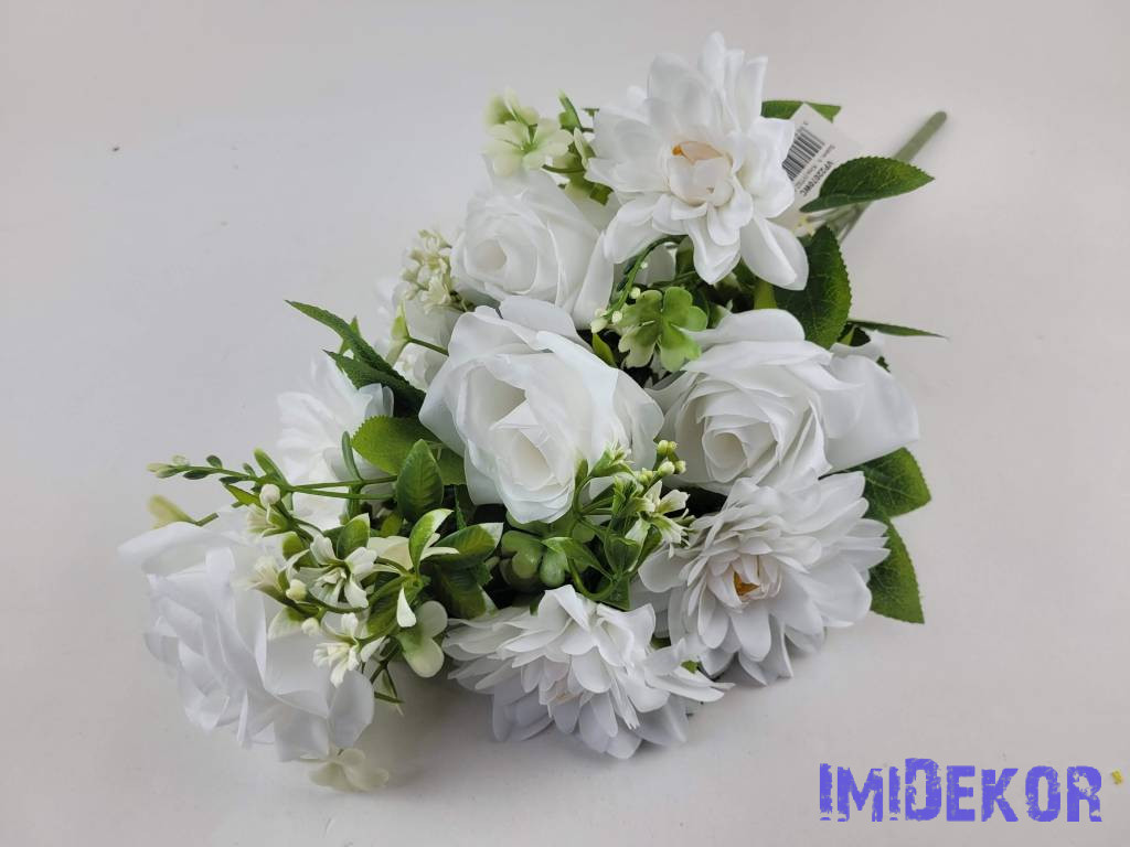 Féloldalas 9 ágú rózsa-dália selyemvirág csokor 50cm - Fehér