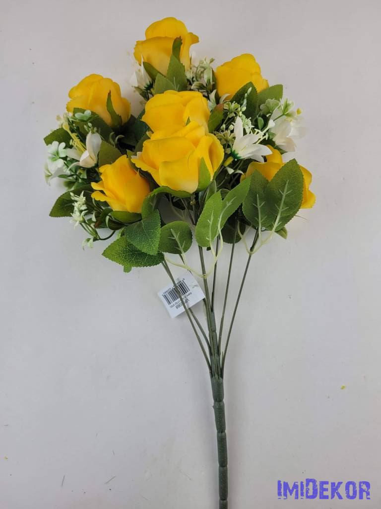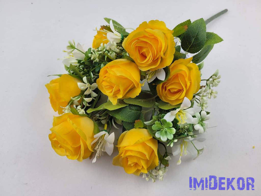 Féloldalas 9 ágú rózsa selyemvirág csokor 48cm - Sárga