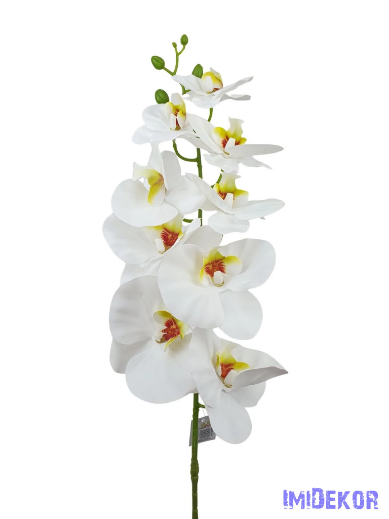 Fodros szirmú orchidea ág 9v 90cm - Fehér
