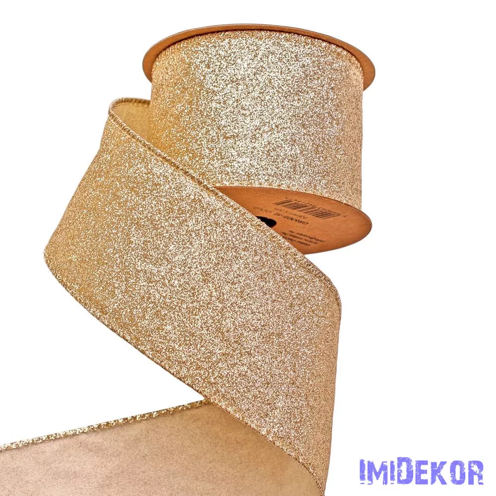 Glitteres karácsonyi szalag drótos szegéllyel 64mm x 5m - Arany