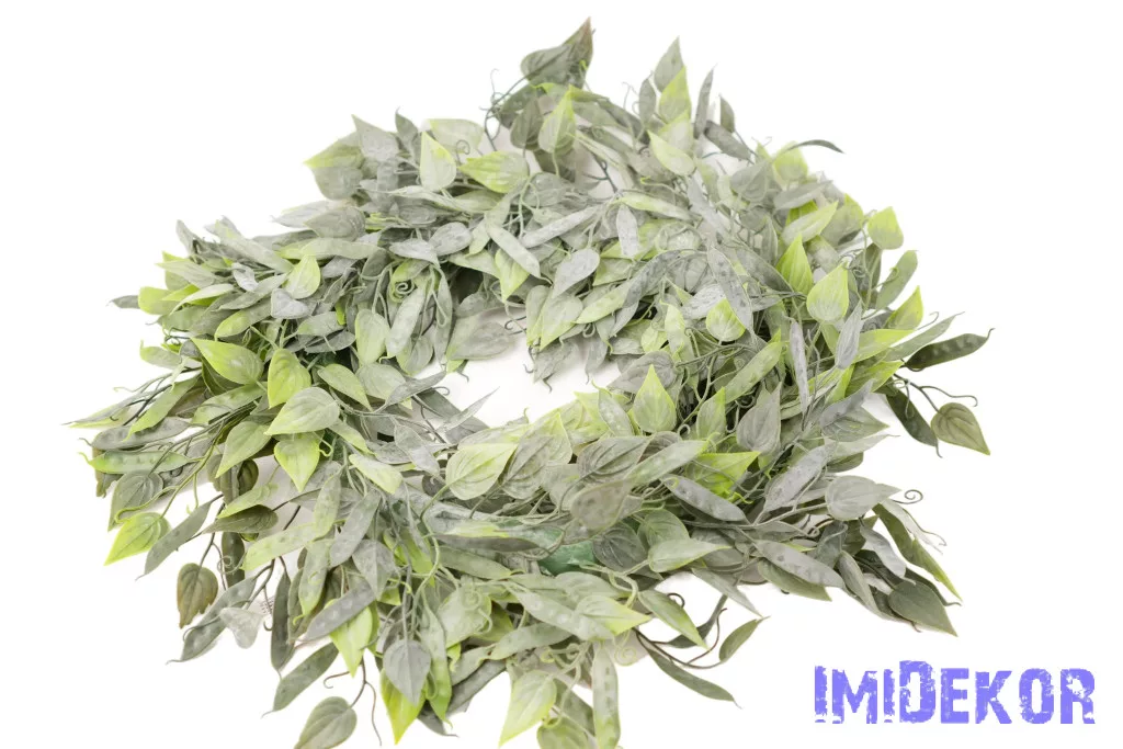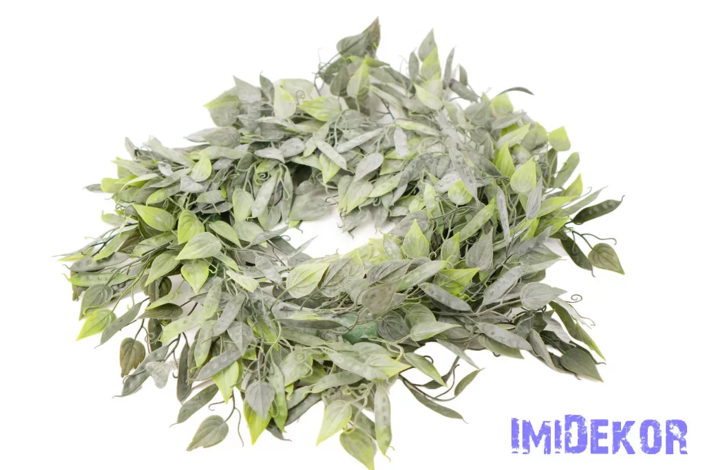 Hegyes levelű hamvas műzöld koszorú 55cm
