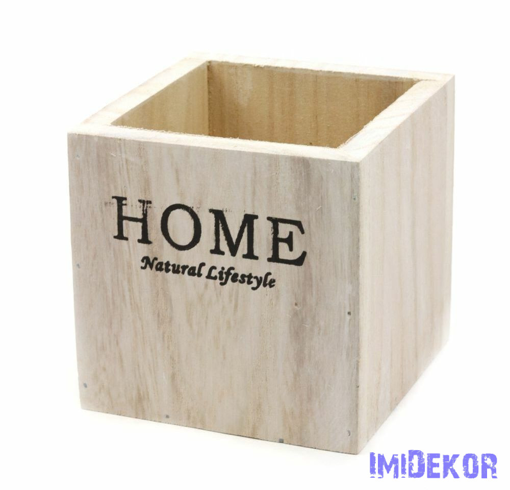 Home feliratos kocka fa kaspó - Fehér