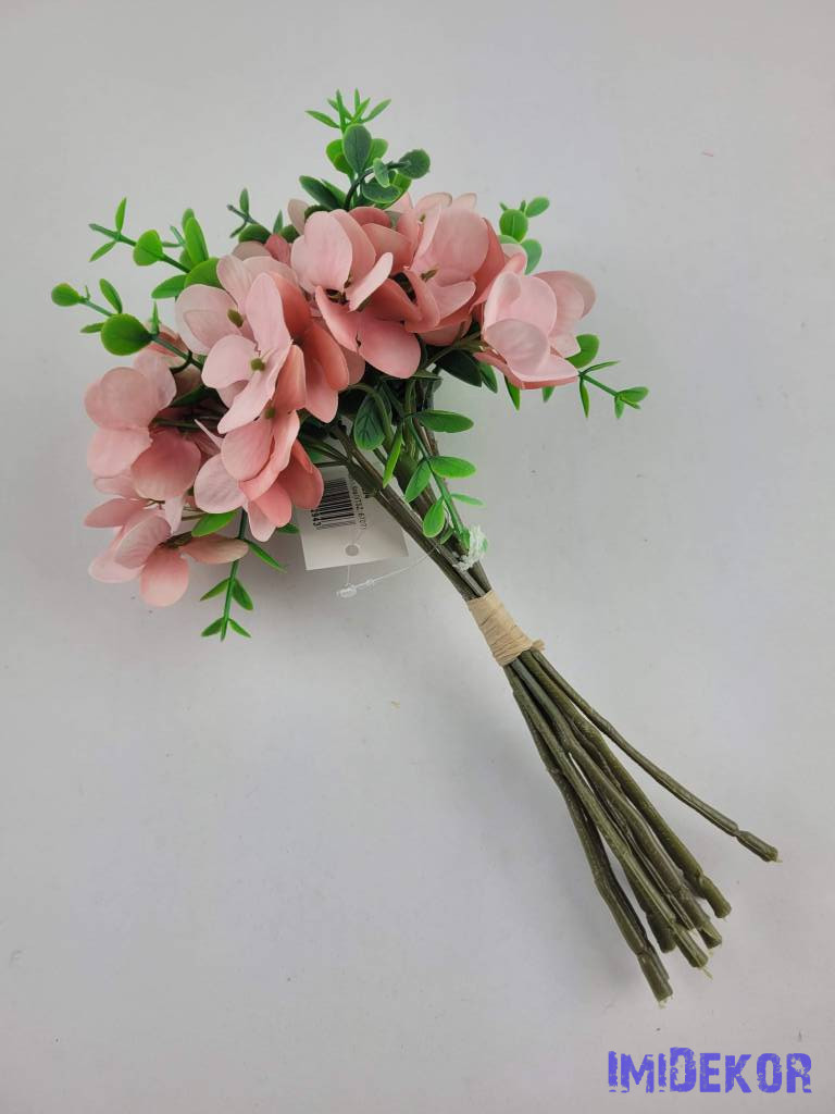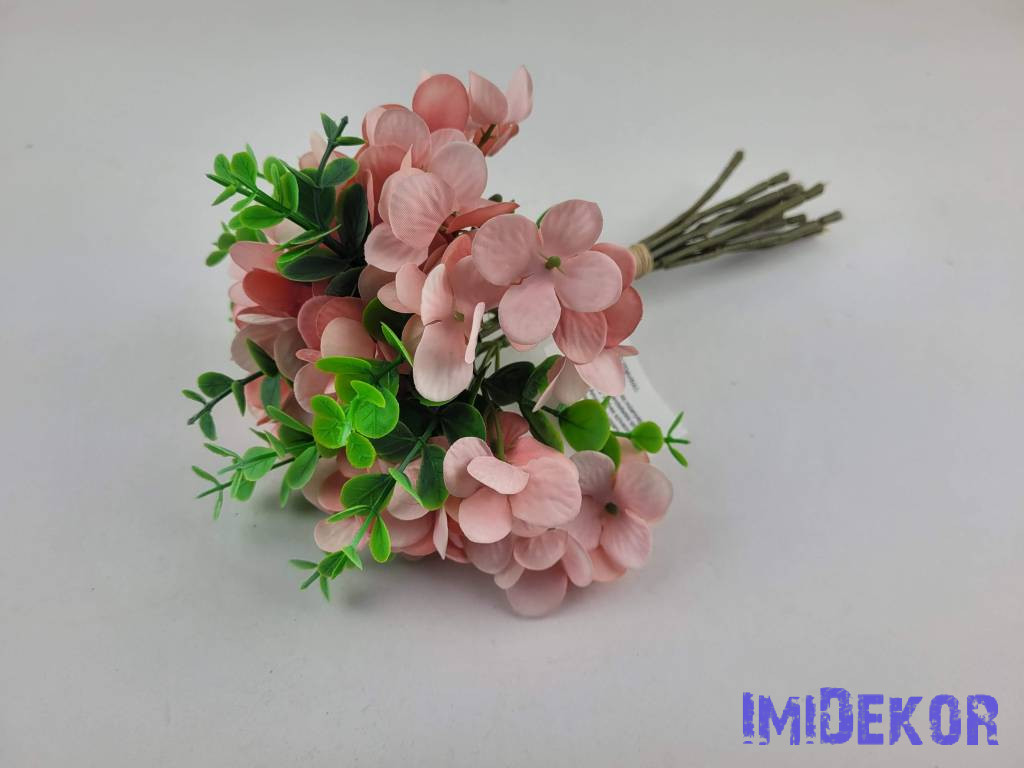 Hortenzia 10 ágú köteg mű eukaliptusszal 25cm - Barackos Rózsaszín