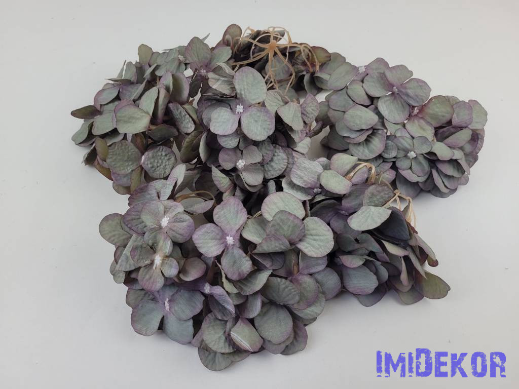 Hortenzia fej antik selyemvirág 16 cm - Szürkés Lila
