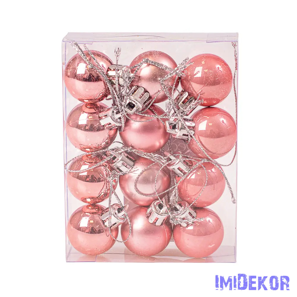 Karácsonyi gömb szett 12 db-os 2,5cm - Korall rózsaszín