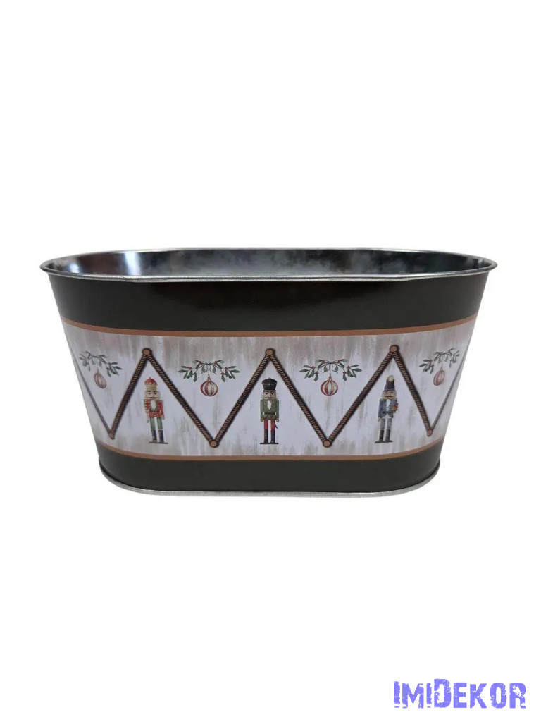 Karácsonyi mintás bádog kaspó ovál - Diótörő figura