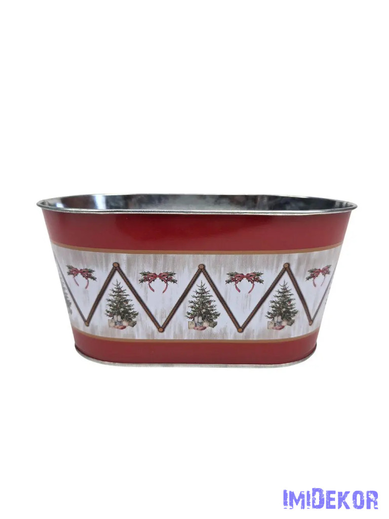 Karácsonyi mintás bádog kaspó ovál - Fagyal