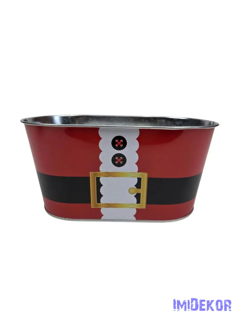 Karácsonyi mintás bádog kaspó ovál - Mikulás öv
