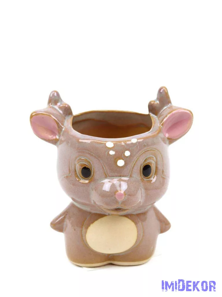 Kerámia szarvas figura kaspó - Barna