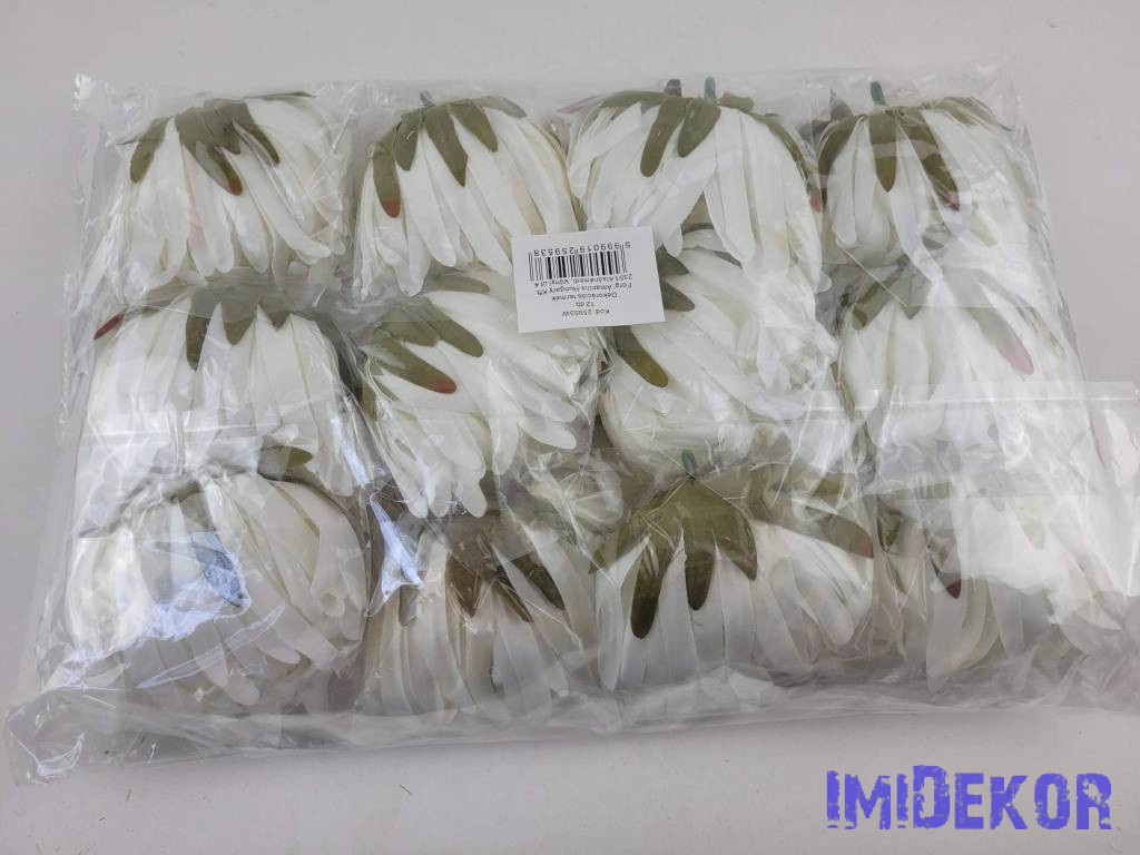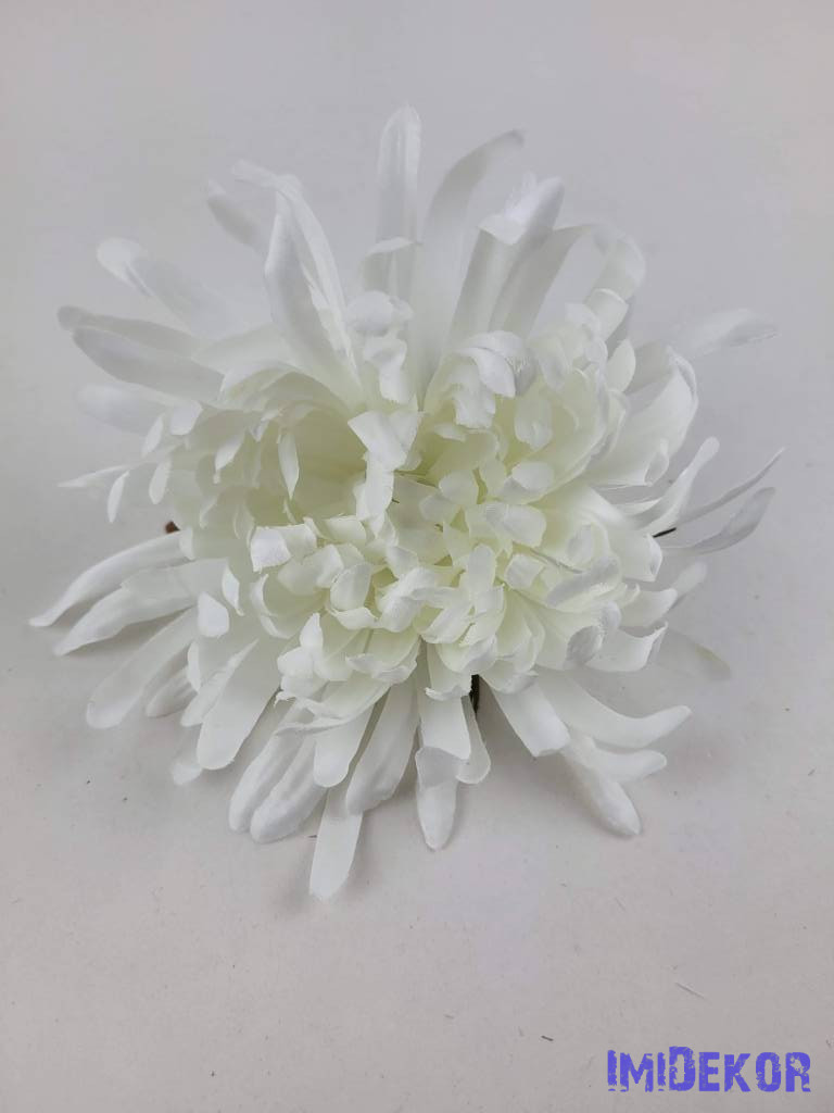 Kócos krizantém selyemvirág fej 14cm - Fehér
