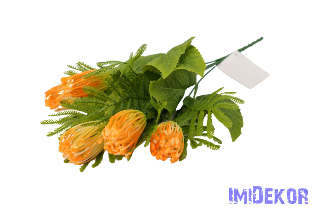 Korallféle műzöld selyem leveles 5 ágú bokor 34cm - Narancs