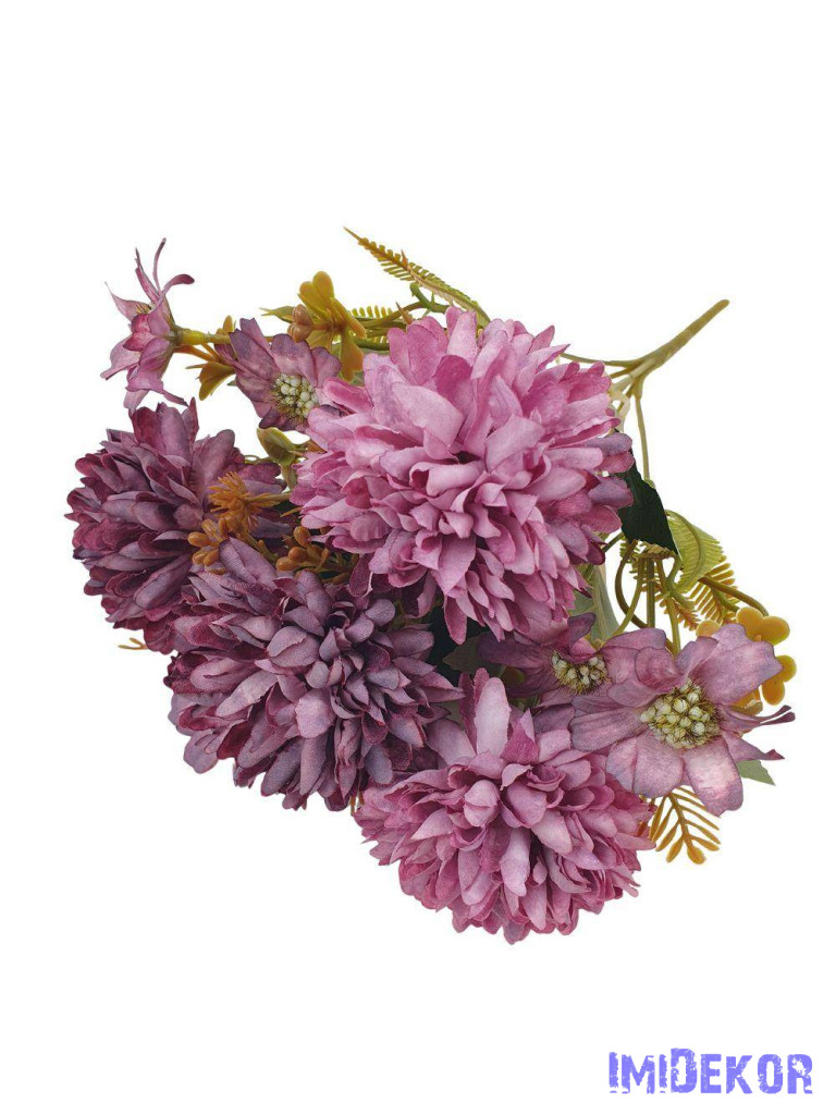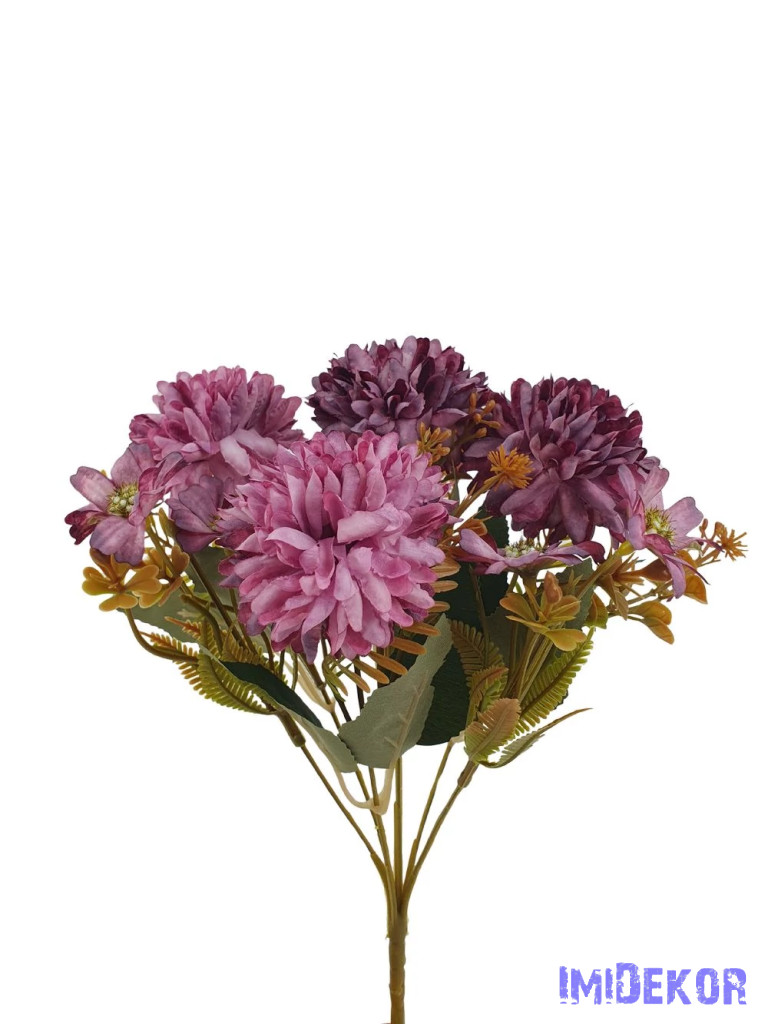 Krizantém 4 fejes selyemvirág csokor 30cm - Mályva