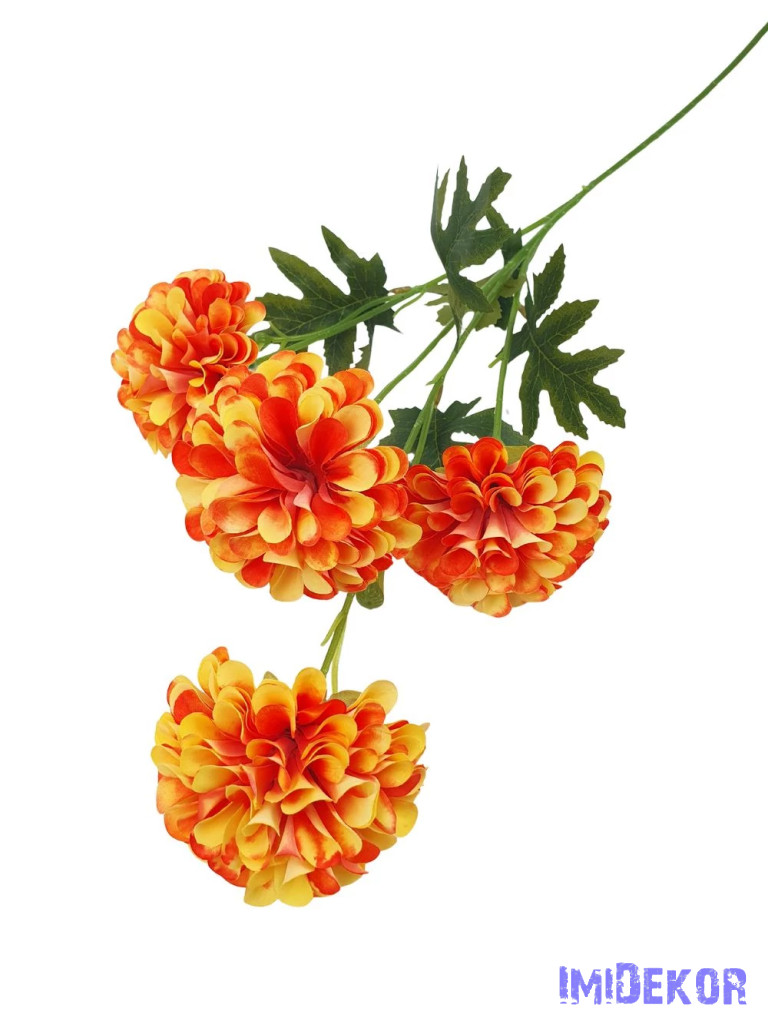 Krizantém 4 fejes szálas selyemvirág 80cm - Narancs