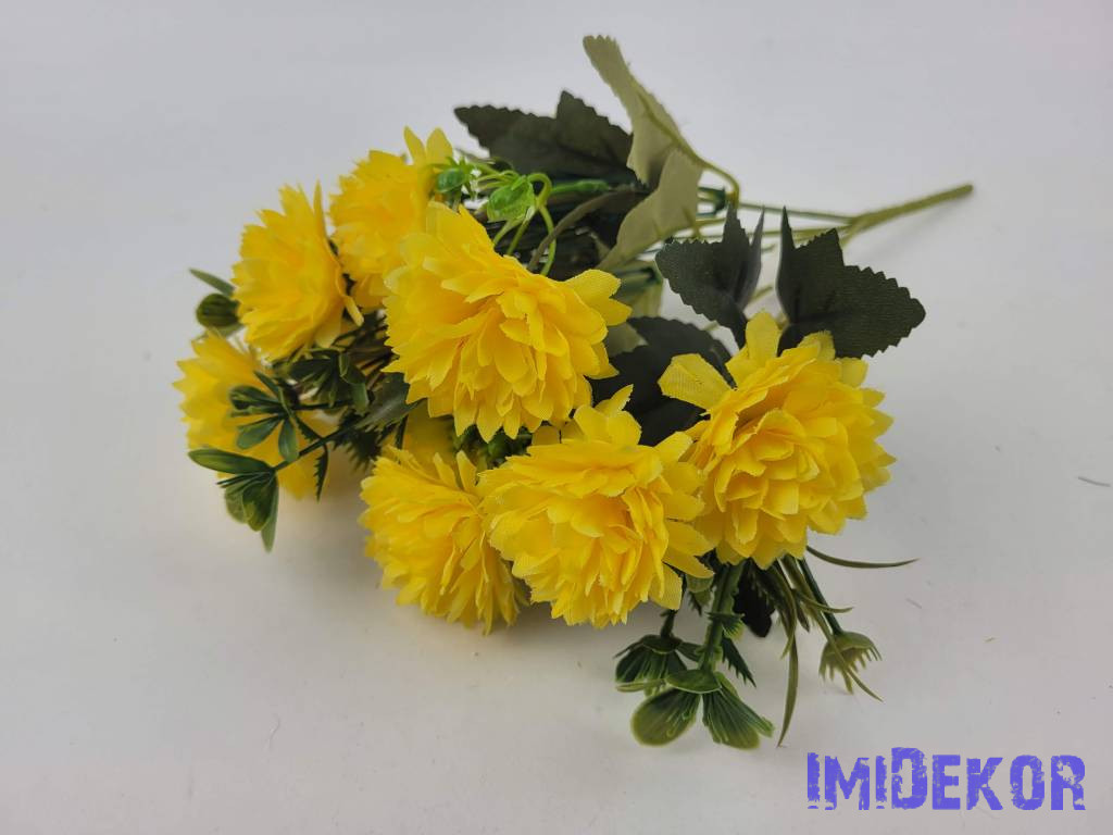 Krizantém 5 ágú 10 fejes selyem csokor 31cm - Sárga