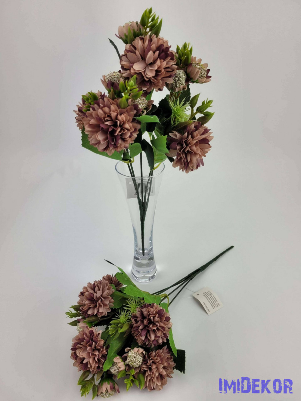 Krizantém 5v selyem csokor 33cm - Mályvás Púder