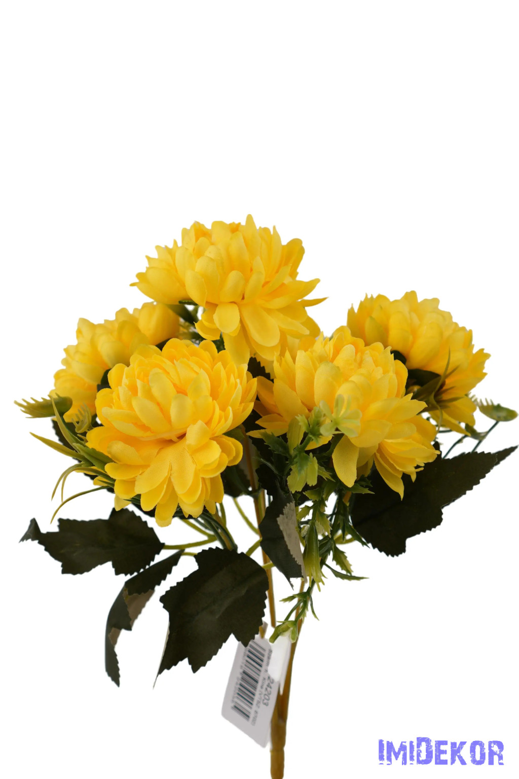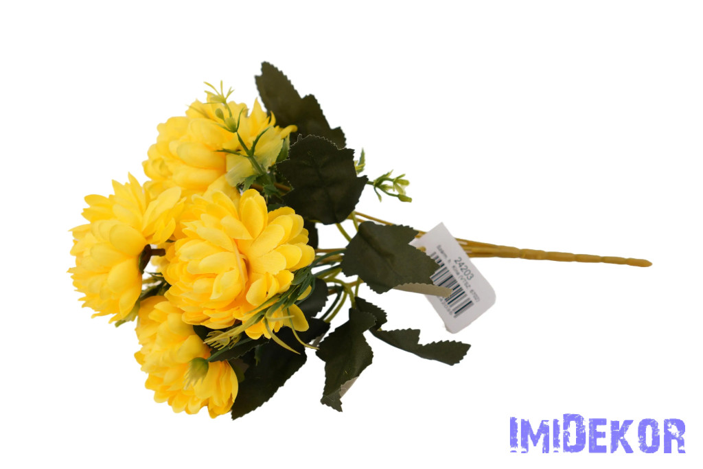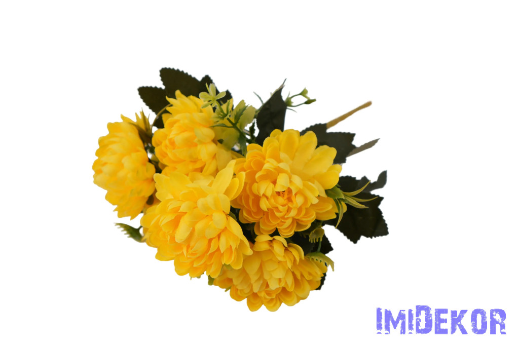 Krizantém 6 ágú selyemvirág csokor 28cm - Sárga
