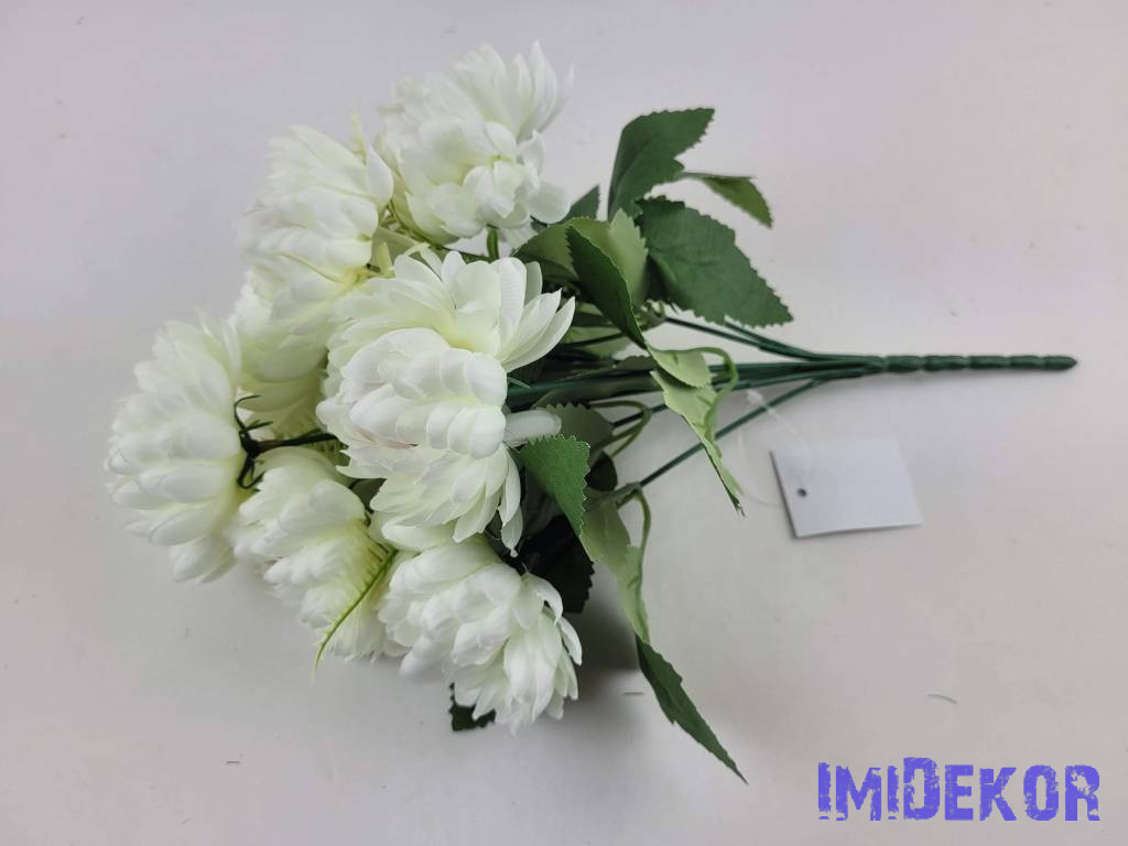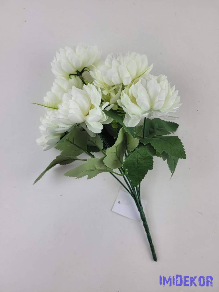 Krizantém 7 ágú selyemvirág csokor 30cm - Krém