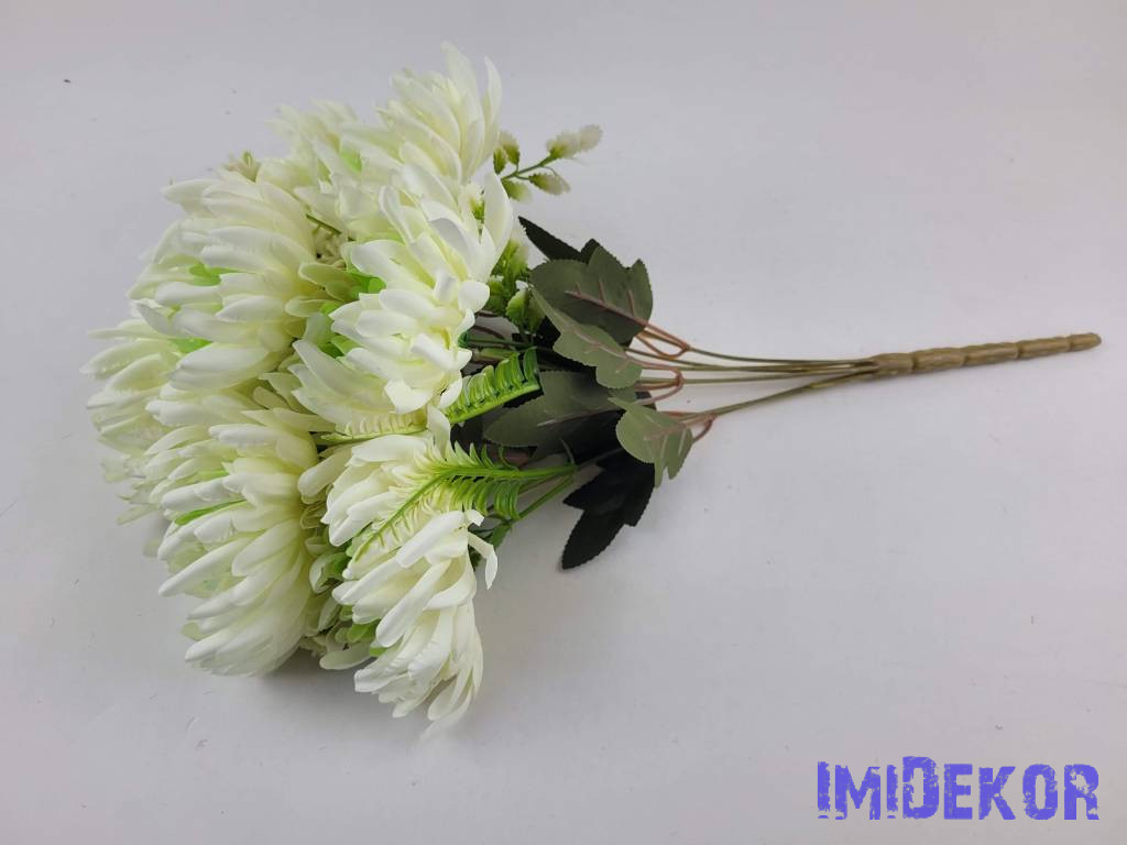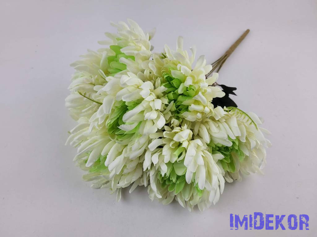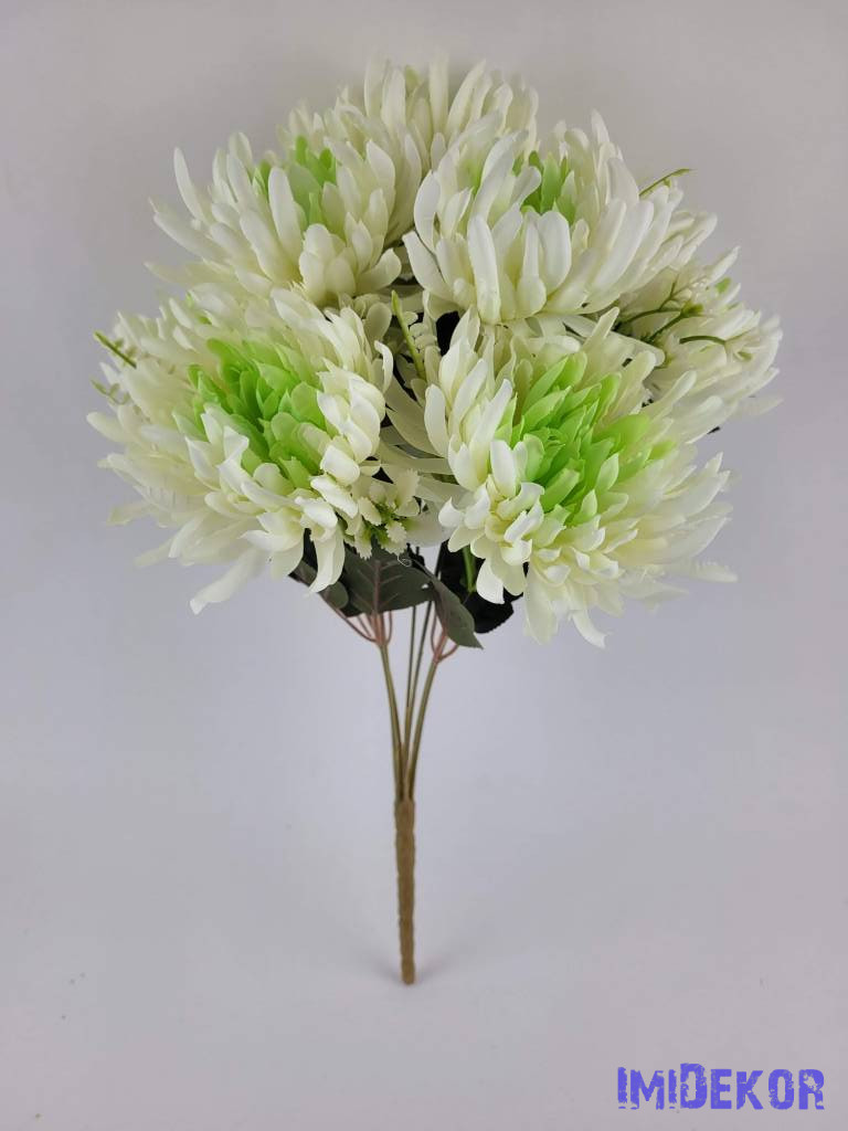 Krizantém 7 ágú selyemvirág csokor 44cm - Krém-Zöld