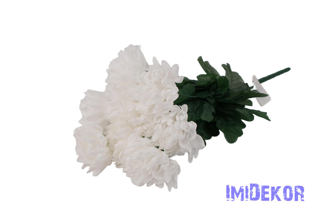 Krizantém 9 ágú selyemvirág csokor 42cm - Fehér