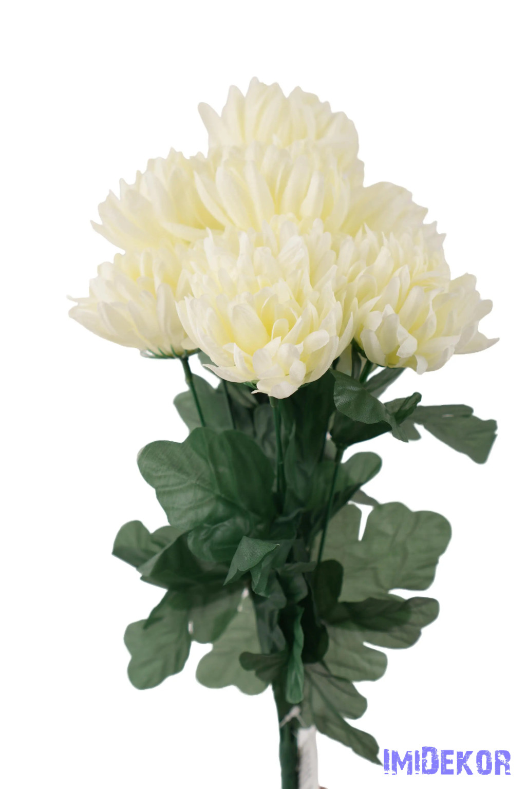 Krizantém 9 ágú selyemvirág csokor 42cm - Krém