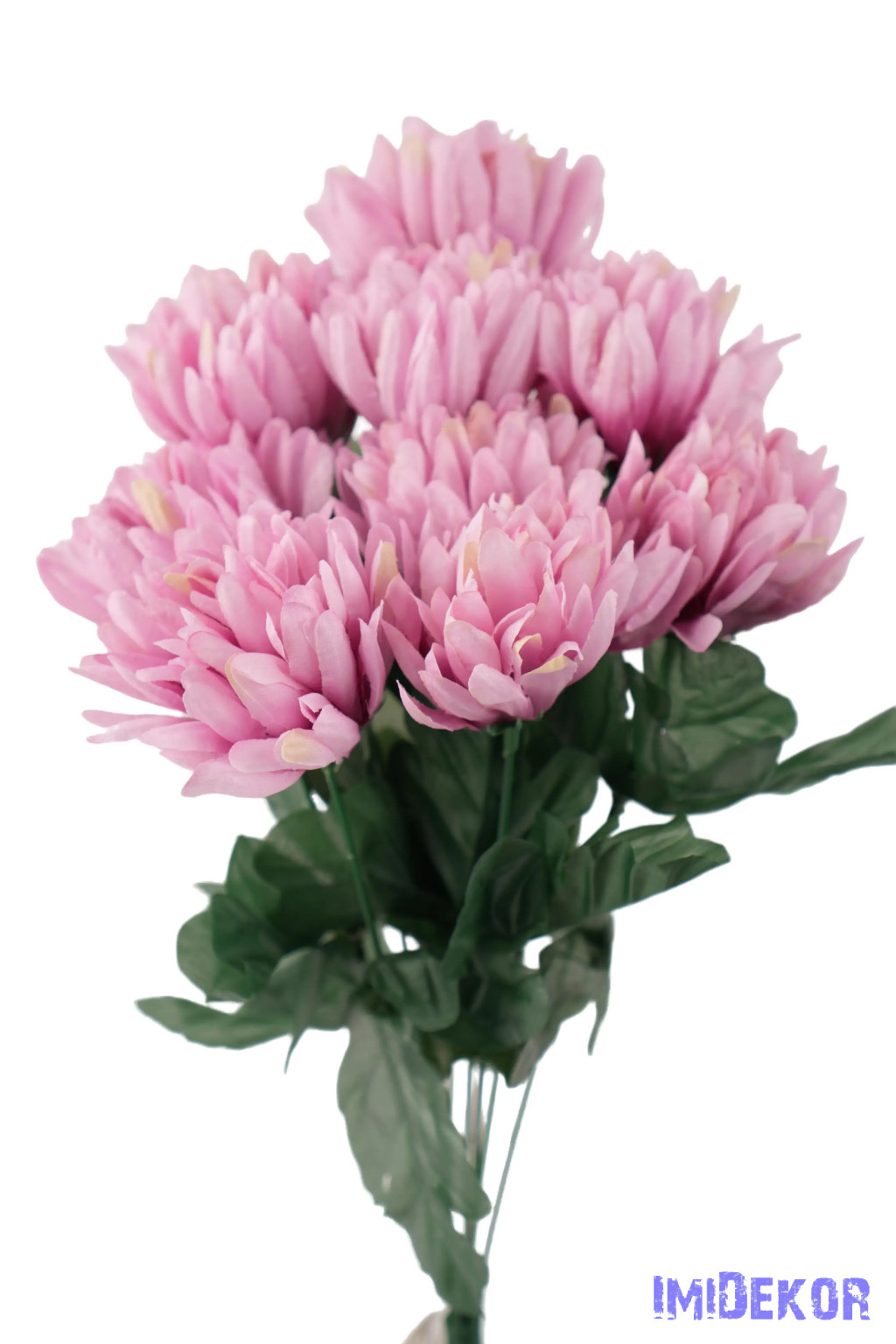 Krizantém 9 ágú selyemvirág csokor 42cm - Lilás Rózsaszín
