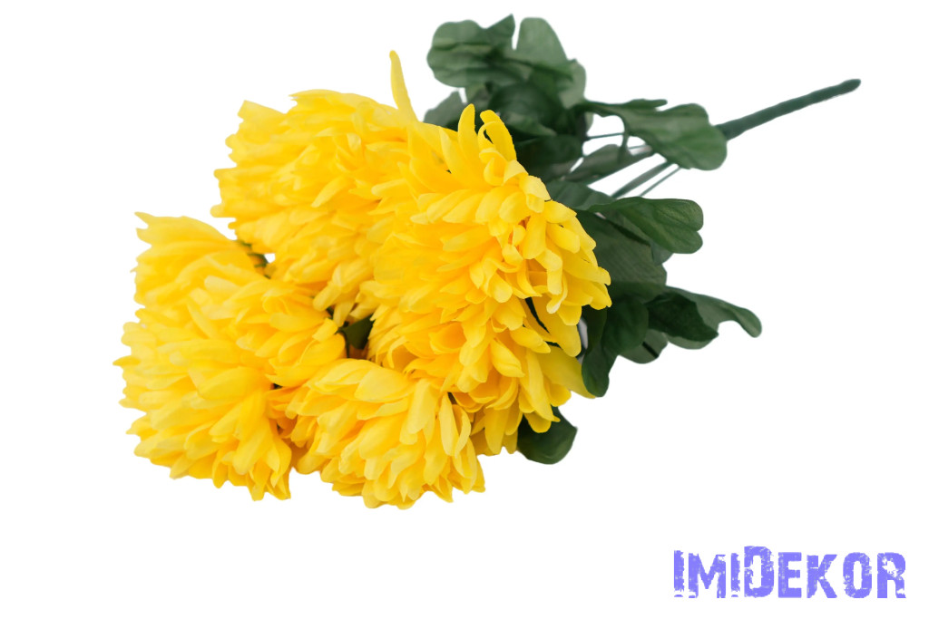 Krizantém 9 ágú selyemvirág csokor 42cm - Sárga