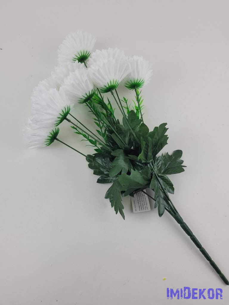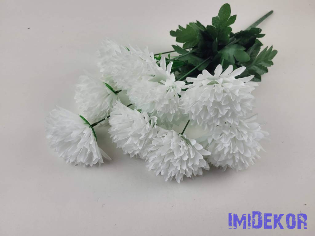 Krizantém 9 ágú szatén virágos csokor D8,5 M50cm - Fehér