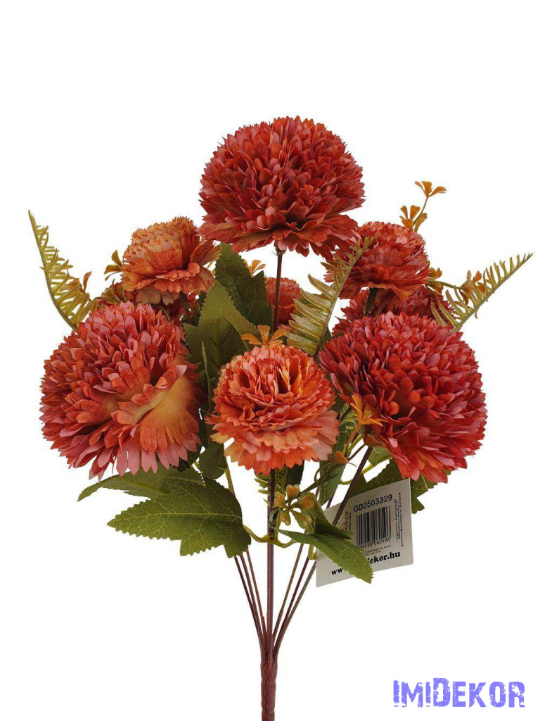 Krizantém 9 fejes selyemvirág csokor 40cm - Rozsda