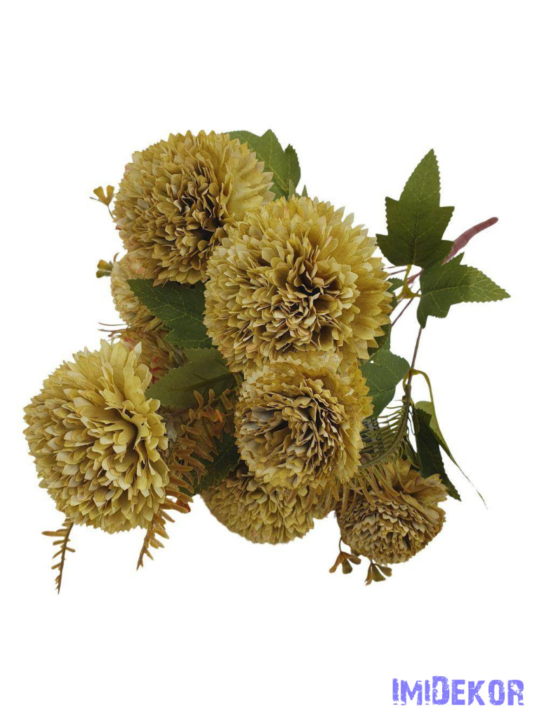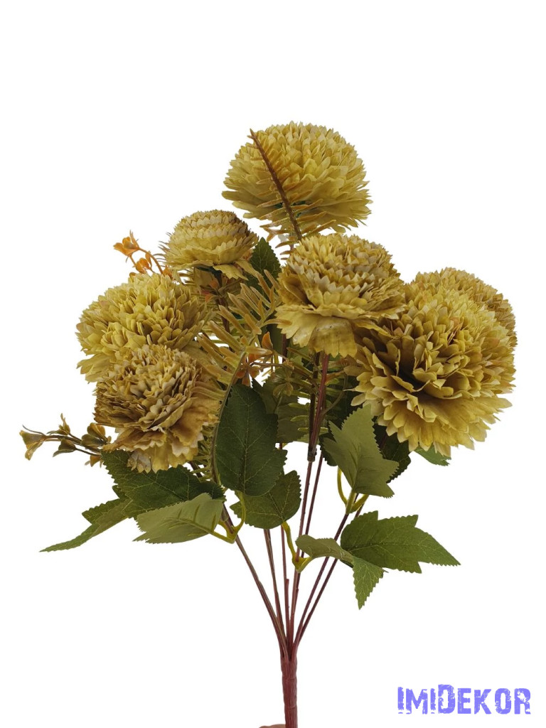 Krizantém 9 fejes selyemvirág csokor 40cm - Zöld